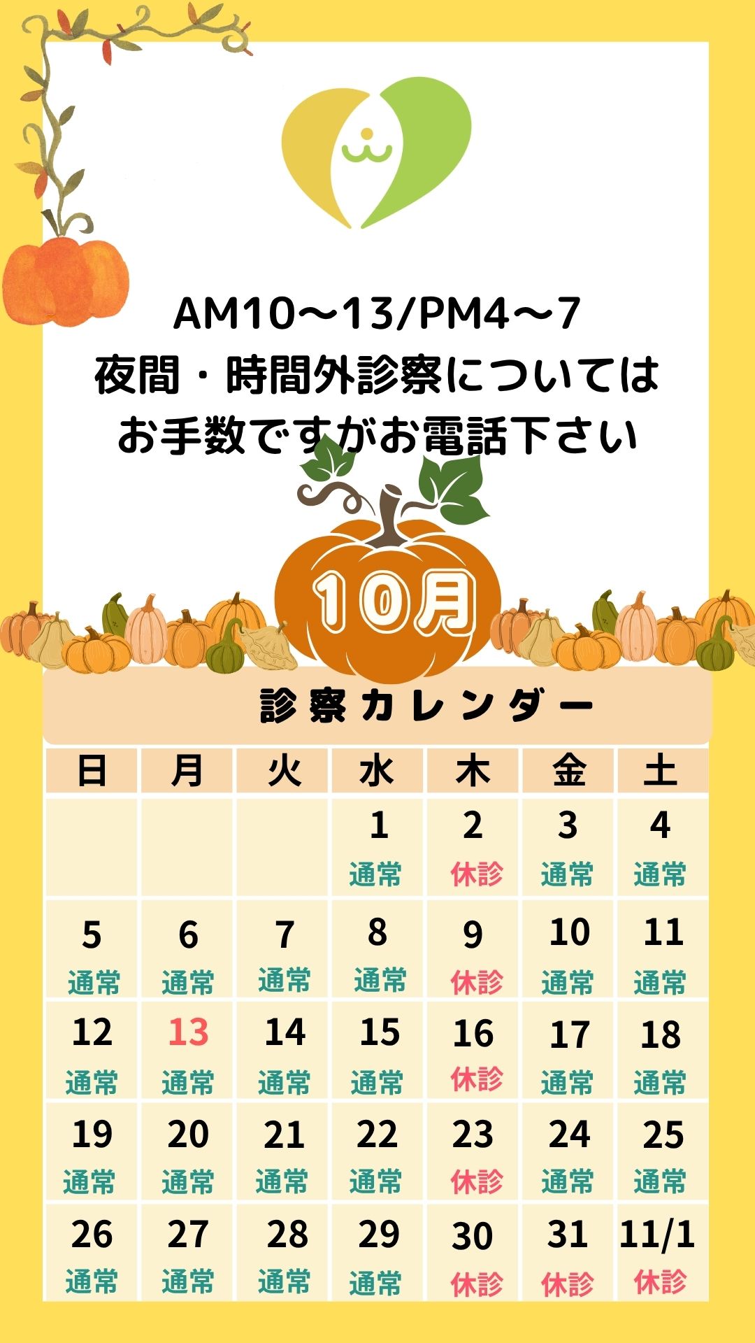 獣医師不在により、10月30日~11月1日は休診とさせて頂きます。