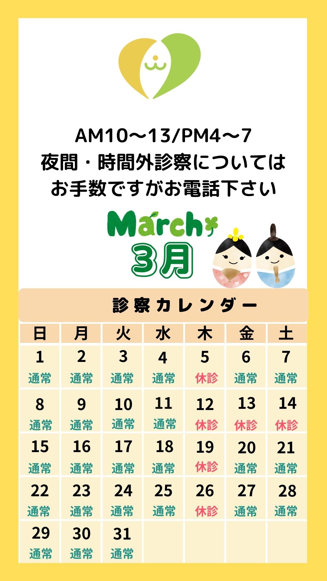 3月の診察カレンダー・予約ページ