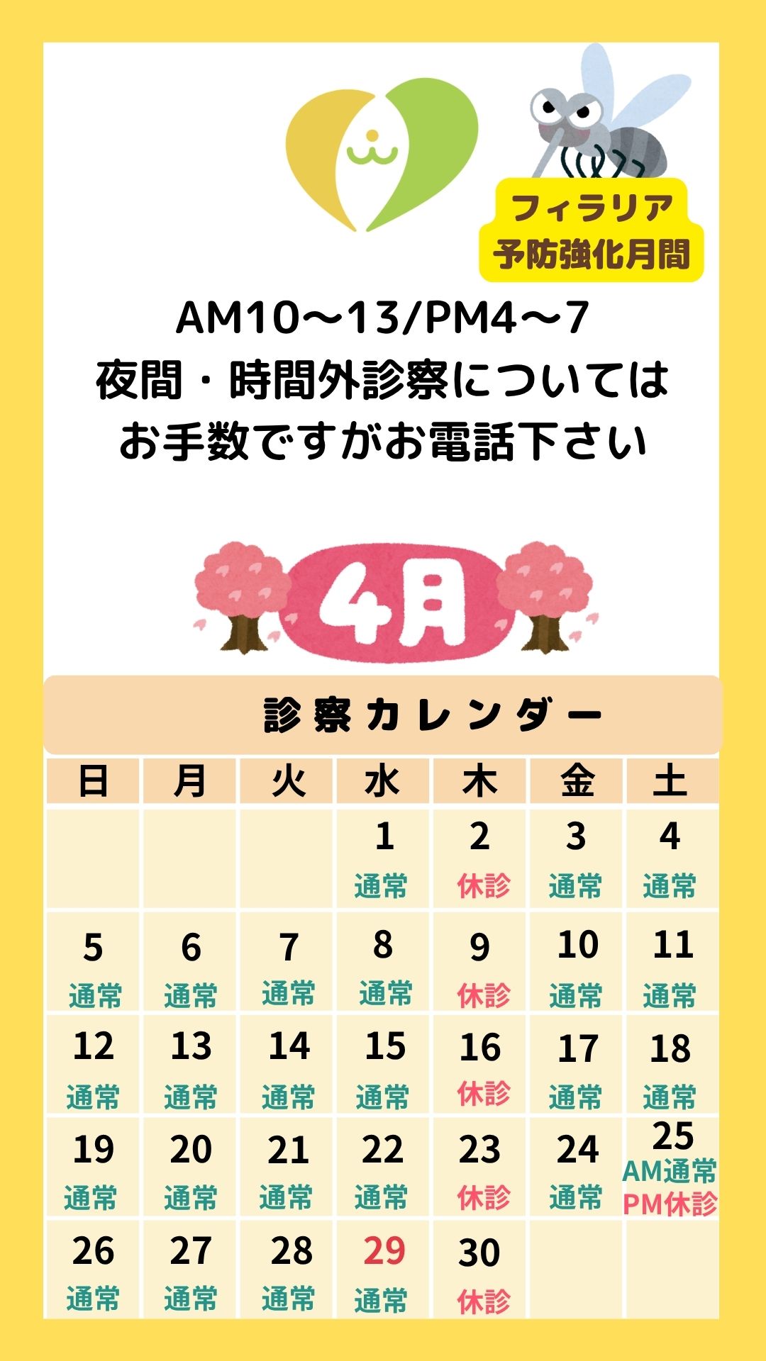 4月の診察カレンダー・予約ページ